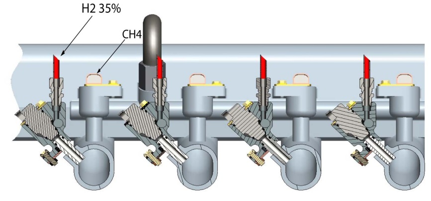 Another important change was related to the gas inlet manifold with four additional injectors and some sensors. In addition a new 60-pole cable to connect to the ECU, hydrogen gas supply pipes and a second hydrogen-methane pressure reducing valve have been wired, as well as the tank has been adapted for storing hydrogen-methane at 200 Bar.