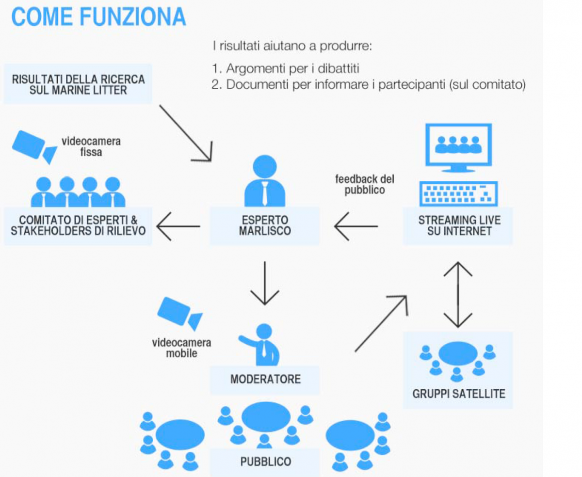 - Lo sviluppo di una piattaforma informatica per un dialogo strutturato tra le principali parti interessate (esperti del settore, industriali, politici, cittadini, scuole, associazioni ambientaliste), in 12 paesi europei. Il progetto ha previsto l’organizzazione e gestione di 12 forum nazionali sui rifiuti marini in tutta Europa tra aprile 2014 e aprile 2015, con l’obiettivo di far conoscere la questione dei rifiuti marini e trovare potenziali soluzioni a lungo termine.